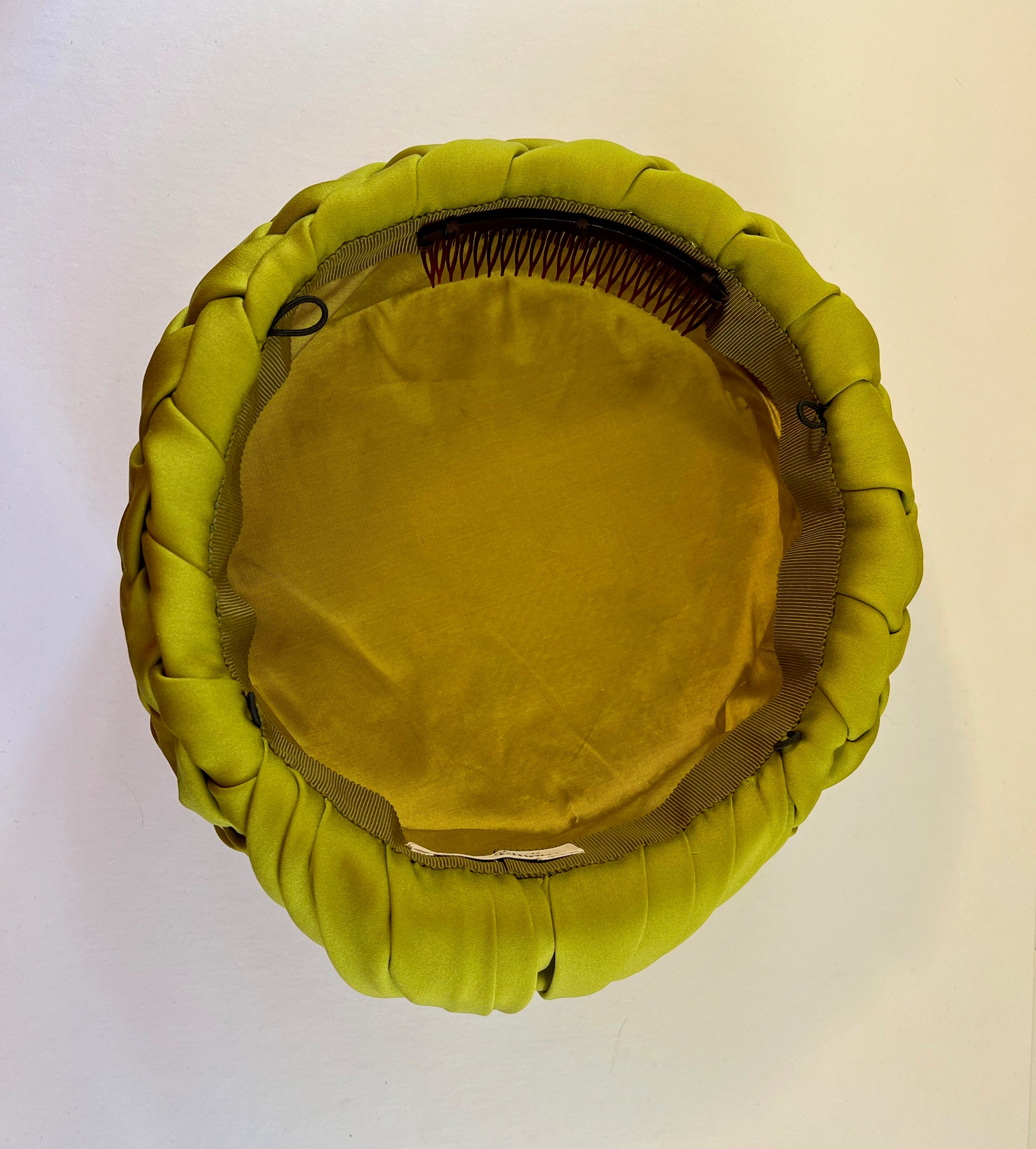 Charlotte - Lattice Smocked Silk Draped Pillbox - bright olive